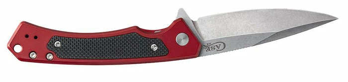 Case Knives have done it: the award for the “American Made Knife of the year” went to the Case Knives Marilla in 2021. This knife didn’t just win a prize, however, but represents a completely new branch that the traditional manufacturer is tapping into here. The Marilla is one of the few truly modern pocket knives you’ll find in the Case Knives portfolio. Just like the traditional folders, this knife is made entirely in the USA with a lot of handwork and attention to detail. The colored anodized aluminum handle scales are not only good in the hand, but also ensure that the weight is absolutely within limits – after all, this is a large working folder. The G10 inlays once again ensure that the Marilla rests securely in your hand when you flip the blade out of the hilt via the flipper tab.
