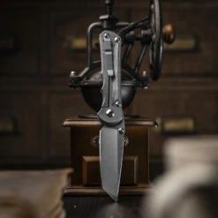 For the first time, there is the combination of the blade with the flipper/ the milled fuller and the contoured handle scales.
