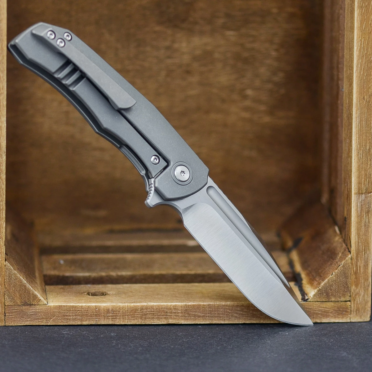 To keep the overall weight low, the Titanium handle scales were provided on the inside with small recesses.