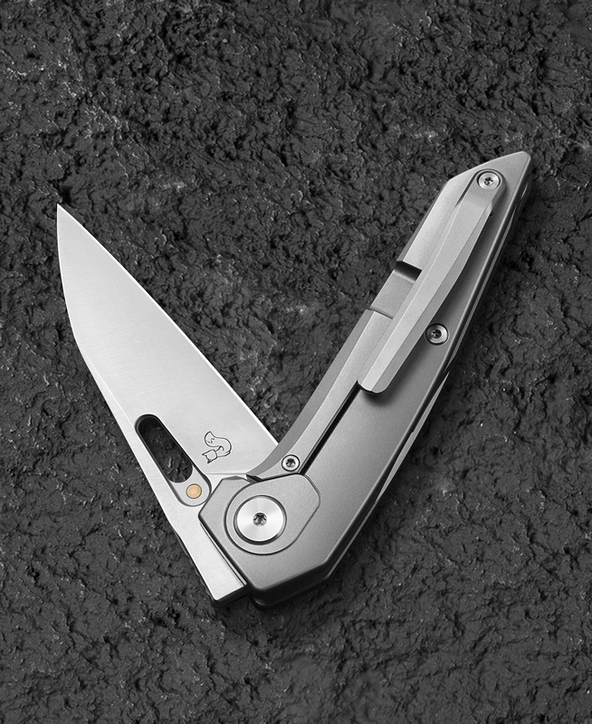 The titanium handle immediately catches the eye. It not only gives the knife stability and durability, but also a distinctive, contemporary look. A fixed Frame Lock mechanism secures the blade in the open position, while the practical clip keeps the knife always ready to hand.