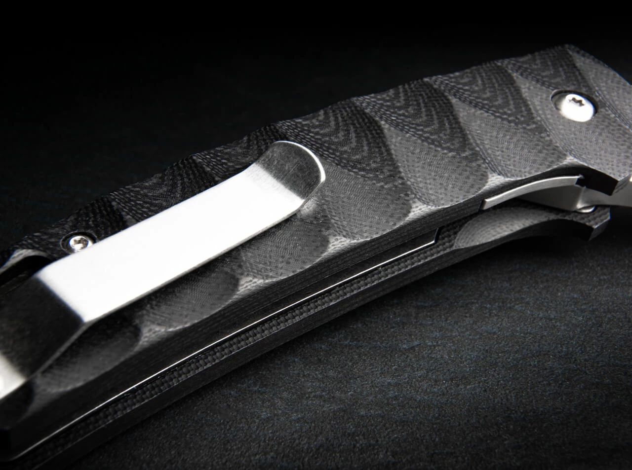 The handle, like the blade, bears the typical signature of Jens Ansø. Unlike its predecessor, the Haddock Pro now features a liner lock. The black G10 handle scales, which have been provided with the typical Ansø grooves, are very secure and comfortable in the hand.