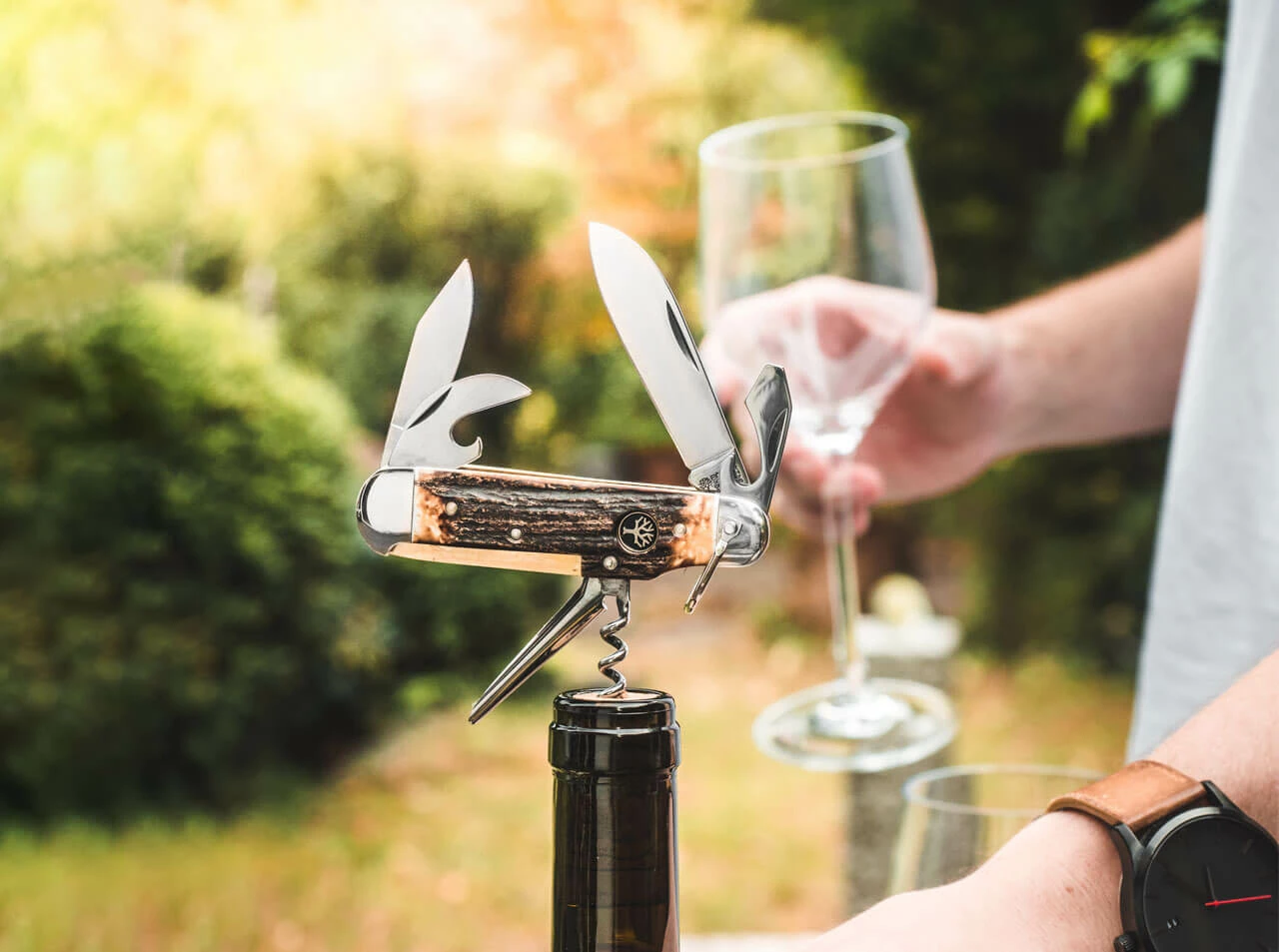 This is a knife that even your fathers could get excited about. This 6-piece pocket knife has polished nickel silver bolsters and durable genuine stag horn scales. It is equipped with two blades, can and bottle opener, piercing and reamer as well as a corkscrew and slotted screwdriver. Blade made of 4034 steel.