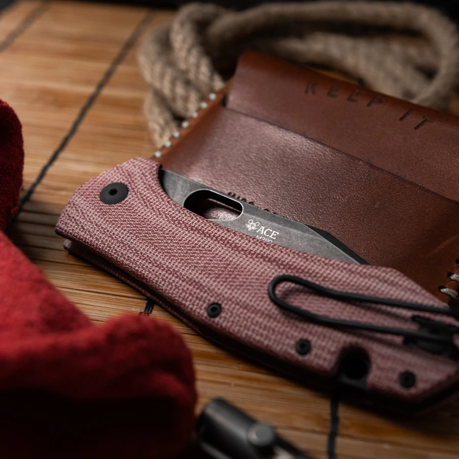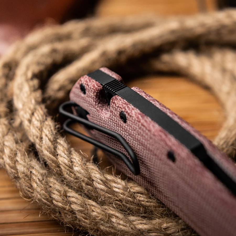 The red Micarta version also got a steel upgrade. The M390 steel is currently a very popular steel and with the black stonewashed finish it makes a great contrast to the red micarta.