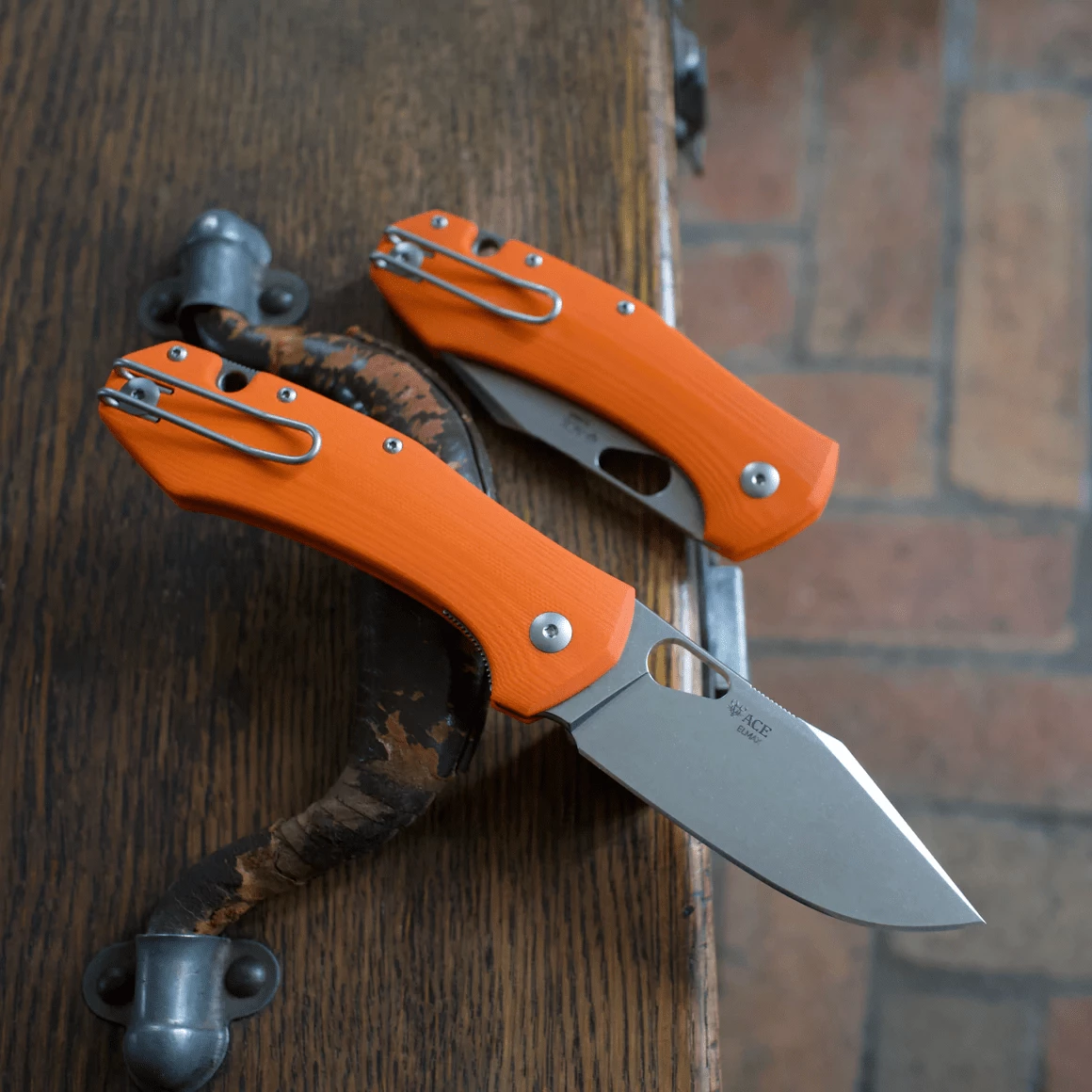 Jesper Voxnaes and Jens Anso have created a real eye-catcher with the blade. The swedge and the elegant curve of the tip give the Grand a very attractive appearance. For the steel GiantMouse chose Elmax, which was already used for the Clyde model. Elmax is not only able to be ground to a razor-sharp edge, but is also highly resistant to rust.