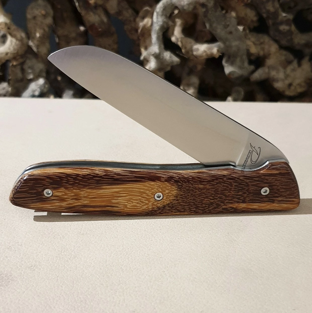 With the wonderfully rounded curve of the handle, the L08 is slightly reminiscent of the rear of an old Cadillac – here the manufacturer has managed to combine the time-honored tradition of knife making in France with the modern design of the 20th century.