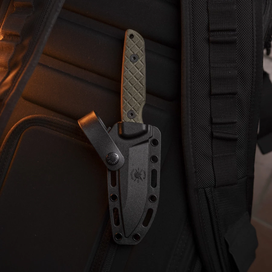 The handle scales made of heavily textured canvas micarta offer you a very secure handling of the knife, which is further supported by the pronounced thumb ramp. The black powder coating on the blade gives the Alala a more tactical look, just like you know it from Spartan Blades.