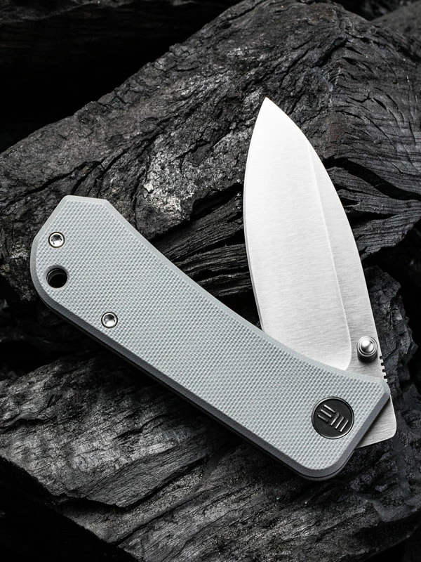 The blade is a very universally shaped Spearpoint blade (comes with a blackwash finish in this version) that has been given a large hollow grind. The genius here is that WE Knife have chosen such a thin grind that the Banter is an incredible cutting machine. The S35VN blade just flies through the cut material and is up to all cutting tasks in EDC. Ceramic ball bearings provide a smooth opening of the blade, giving the Banter a certain playfulness.