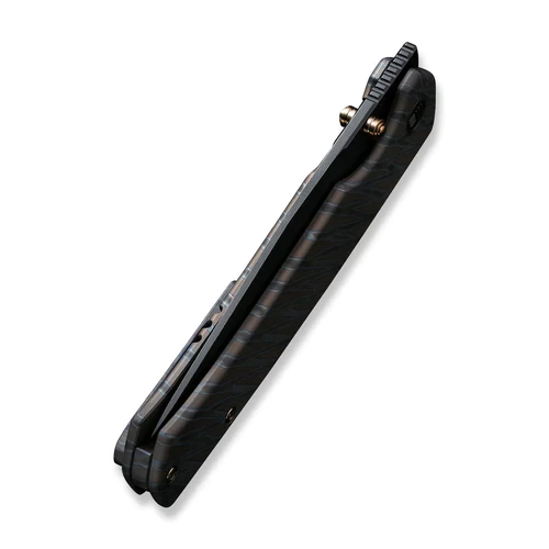 WE Knife Evoke Tiger Stripe Pattern Flamed Titanium